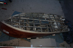 Bisher durchgeführte Arbeiten: Ausbau des alten Schwertkastens und Neuanfertigung, teilweise anfertigen von neuen Decksbalken, Ausbau und Reparatur der Bodenwrangen mit anschliessendem neuen Lackaufbau